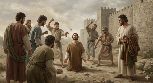57 But they cried out with a loud voice and stopped their ears and rushed together at him. 58 Then they cast him out of the city and stoned him. And the witnesses laid down their garments at the feet of a young man named Saul.